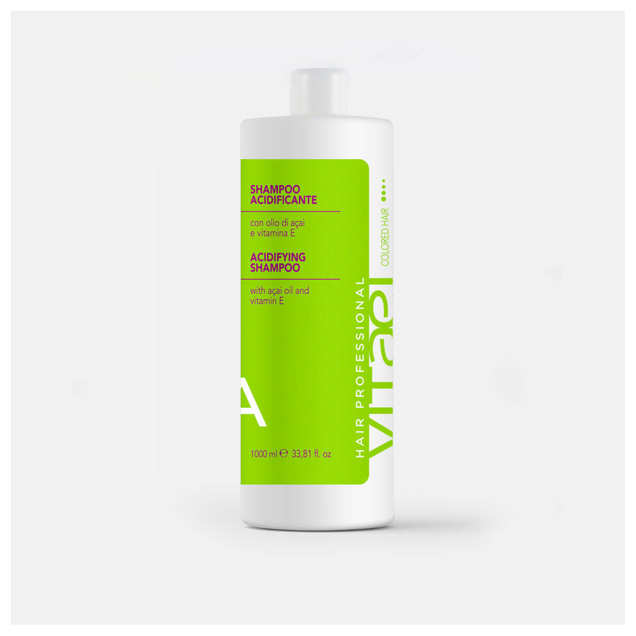 ACIDIFYING SHAMPOO WITH AÇAJ OIL AND E VITAMIN. Delicate shampoo with an acid pH for processed and brittle hair. Formulated with an exclusive antioxidant complex based on Açai Oil, fruit acids, vitamins and UV filter, it forms a protective film on the hair that gives extra shine and extends the life of the color.